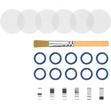 Incluyendo 4 Anillos de la Tapa, este set proporciona los componentes esenciales para también asegurar un cierre hermético de la Cámara de Relleno, crucial para una vaporización eficaz y sin fugas.